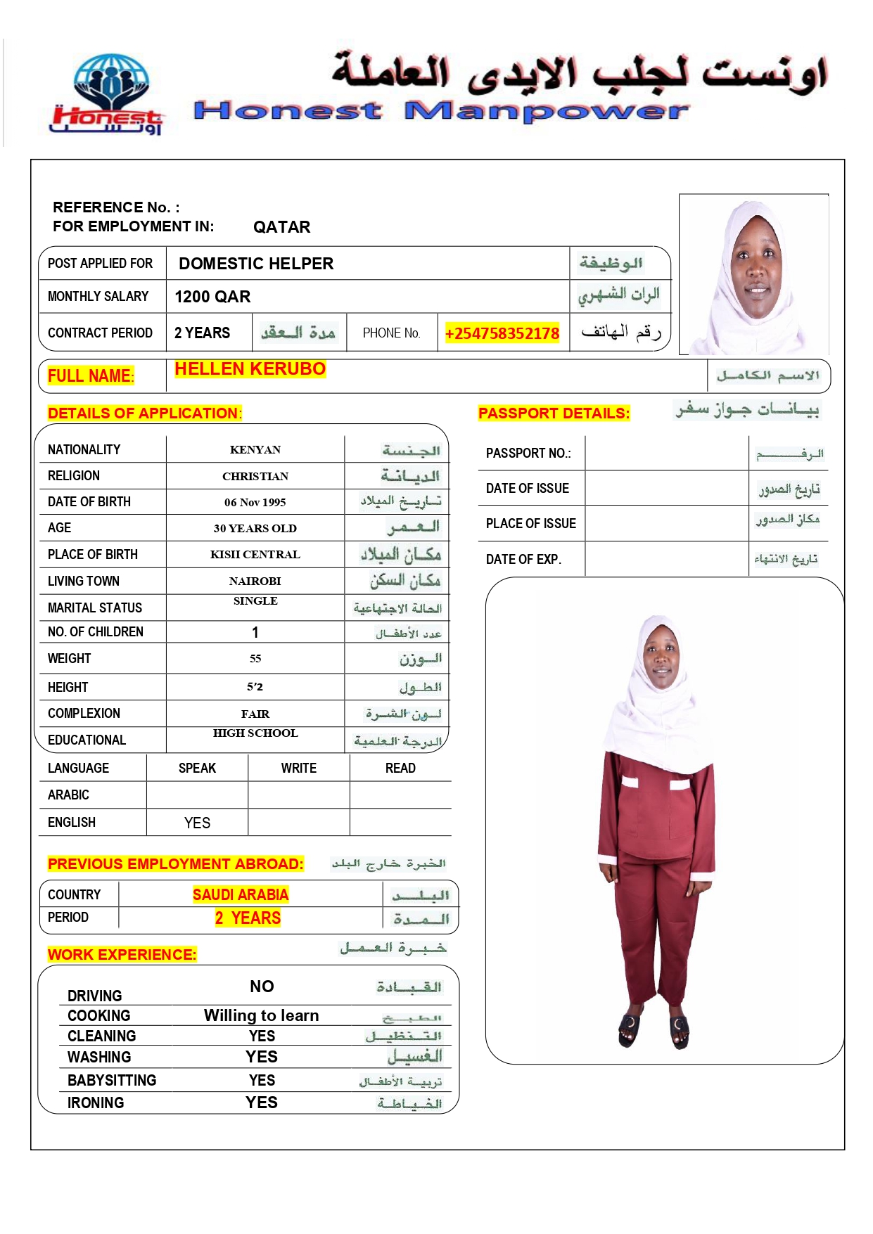 الاسم - عربي HELLEN KERUBO