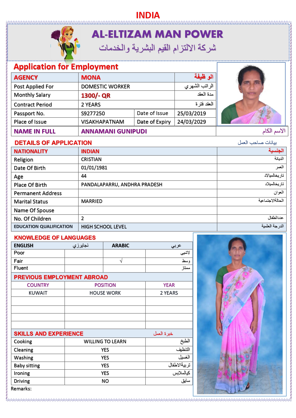 المهنة عاملة منزلية