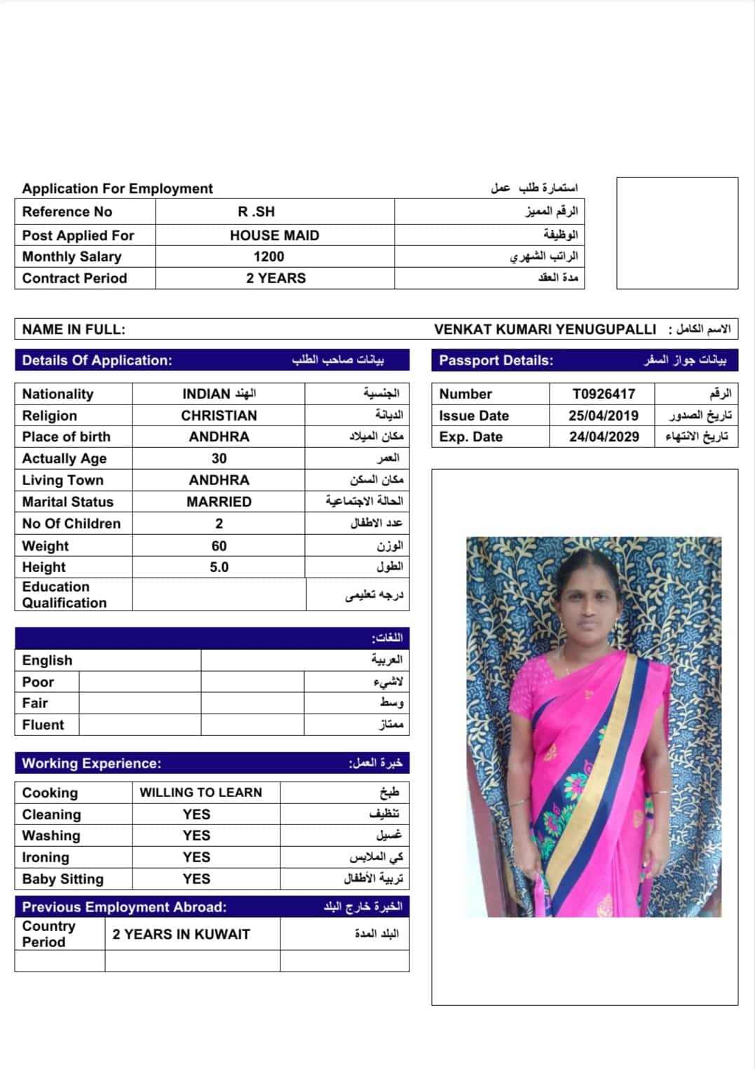الاسم - عربي VENKAT KUMARI YENUGUPALLI