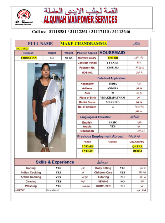 الاسم - عربي CHANRAMMA MAKE