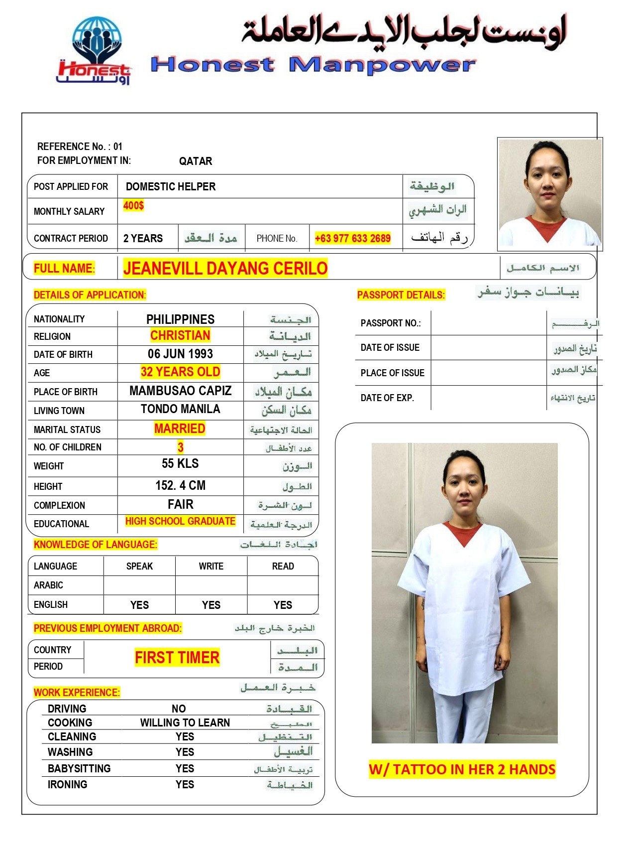 الاسم - عربي JEANEVILL DAYANG CERILO-