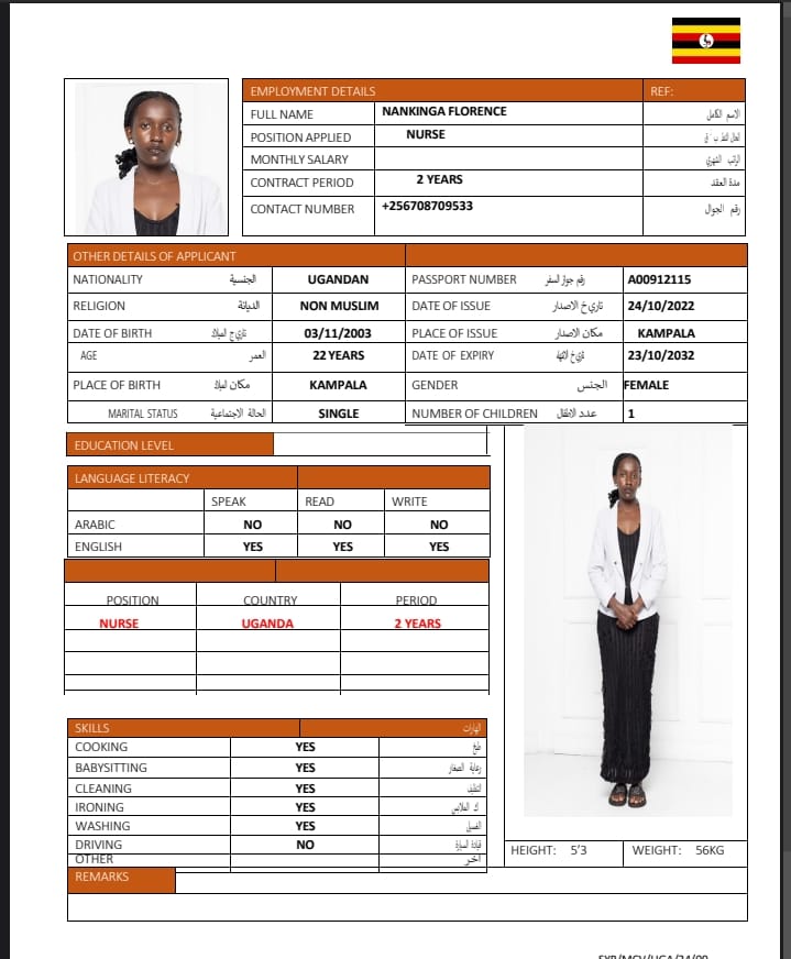 الاسم - عربي FLORENCE NANKINGA/UGANDAN NURSE
