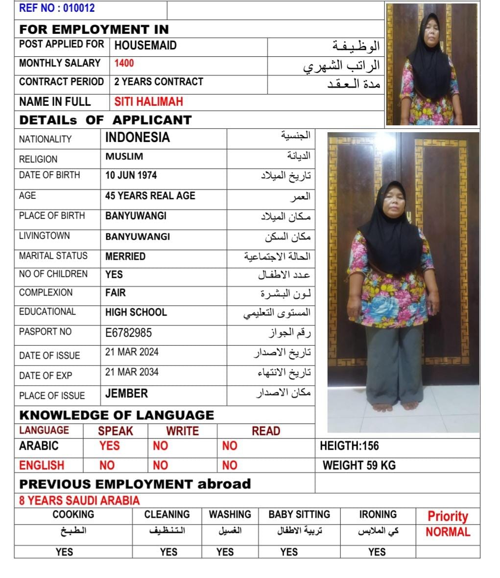 المهنة عاملة منزلية