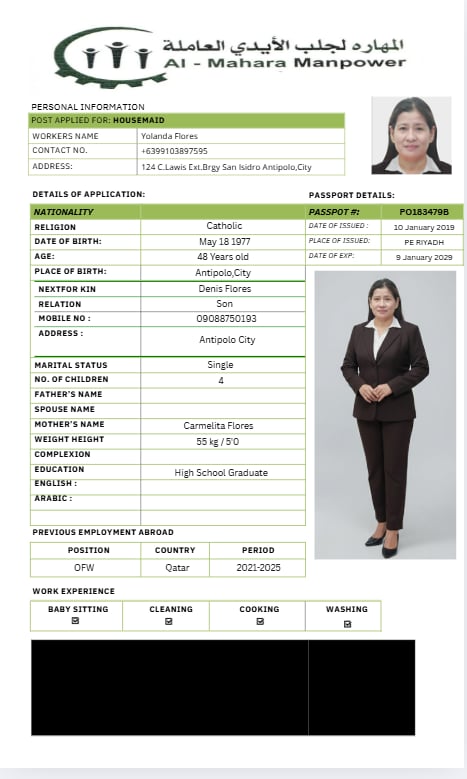 | الاسم - عربي | YOLANDA TAN FLORES |