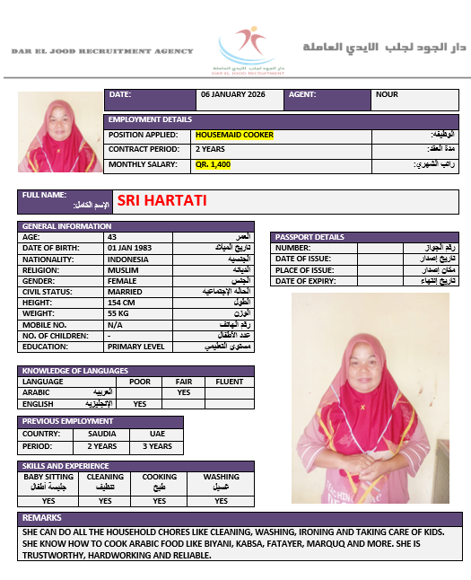 الاسم - عربي SRI HARTATI
