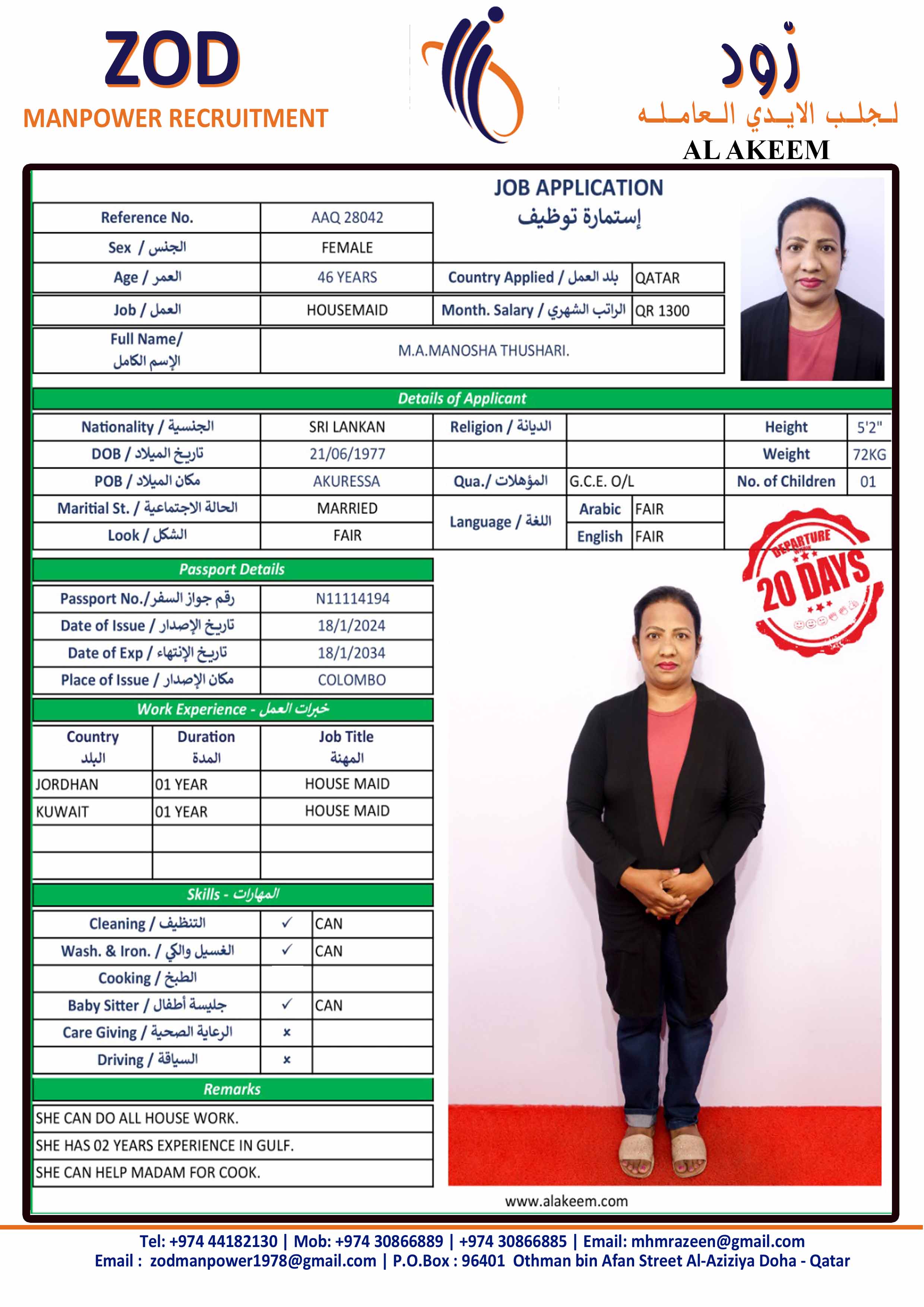 الاسم - عربي M.A.MANOSHA THUSHARI 3