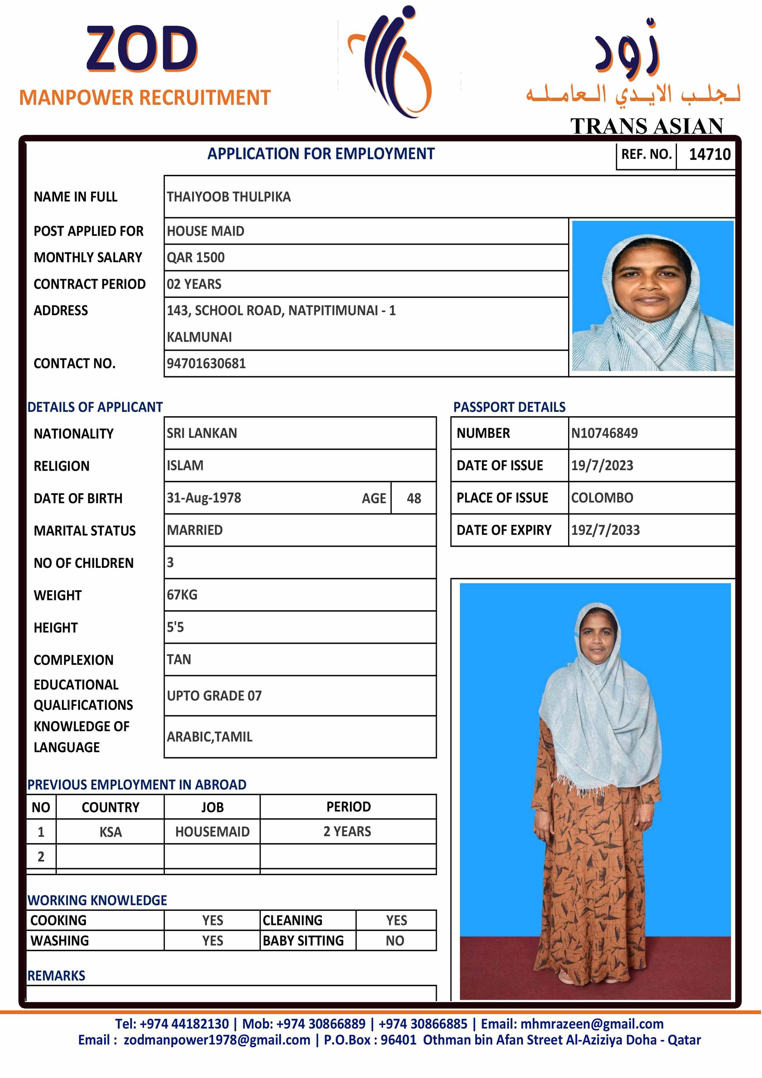 الاسم - عربي THULPIKA THAIYOOB