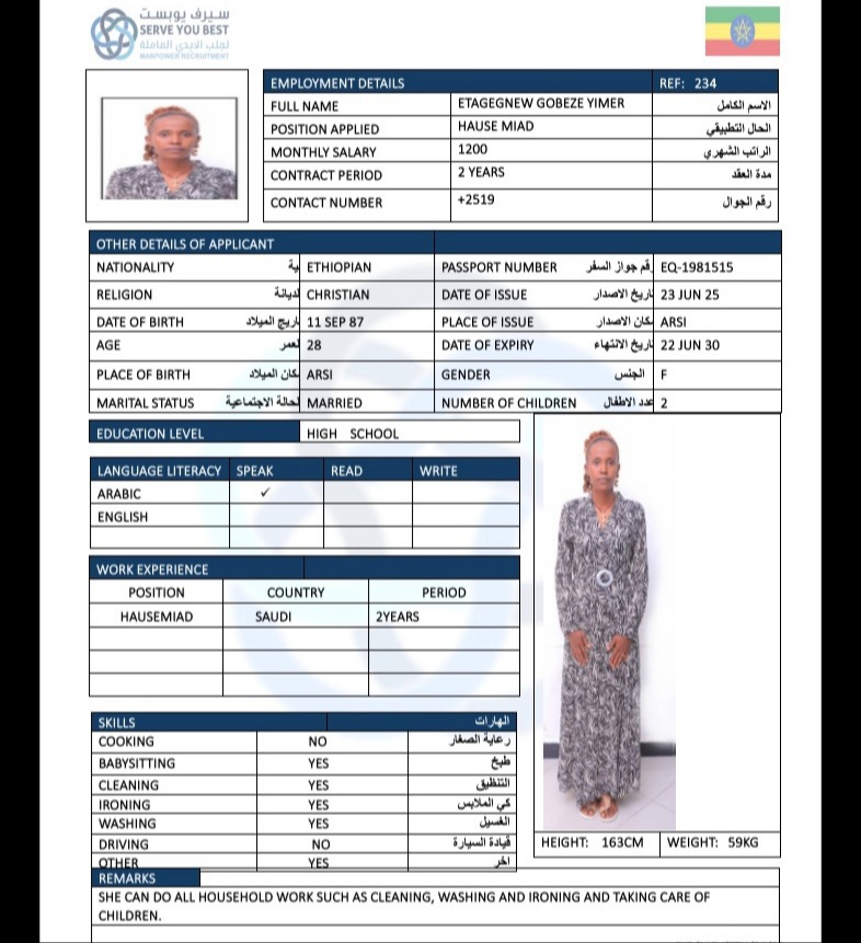 الجنسية أثيوبيا