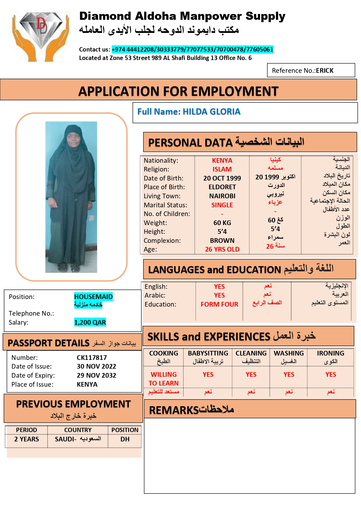 الشركة ‏ دايموند الدوحة لجلب الايدى العاملة