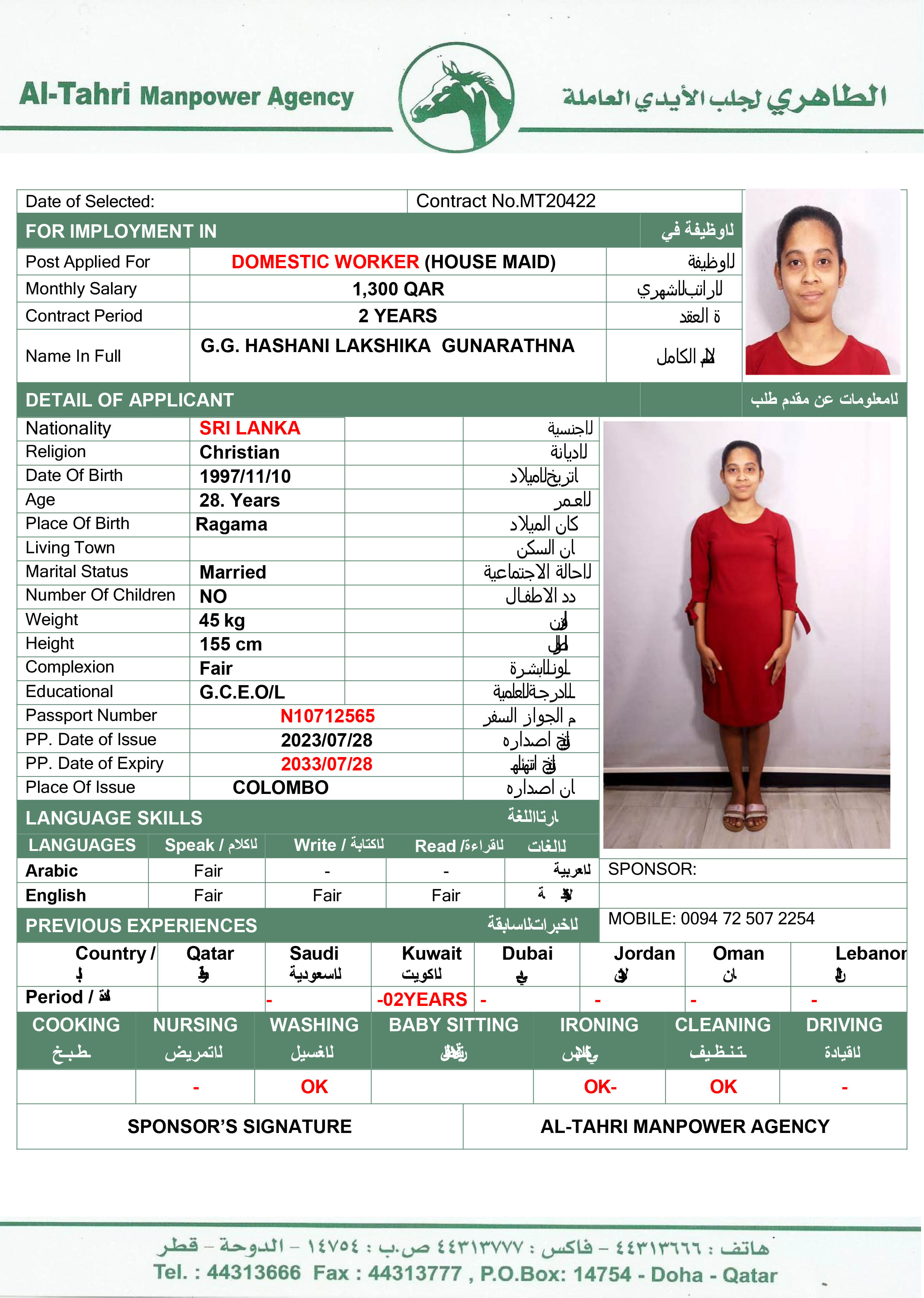 الجنسية سريلانكا