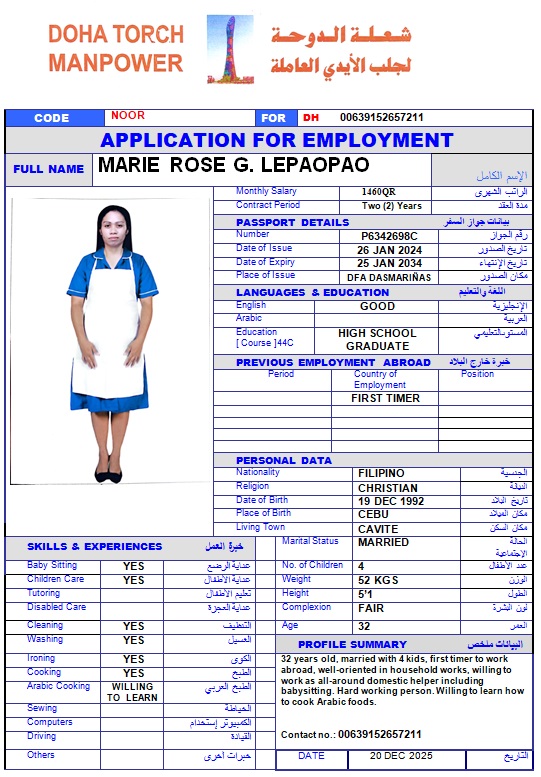 الاسم - عربي MARIE ROSE G LEPAOPAO