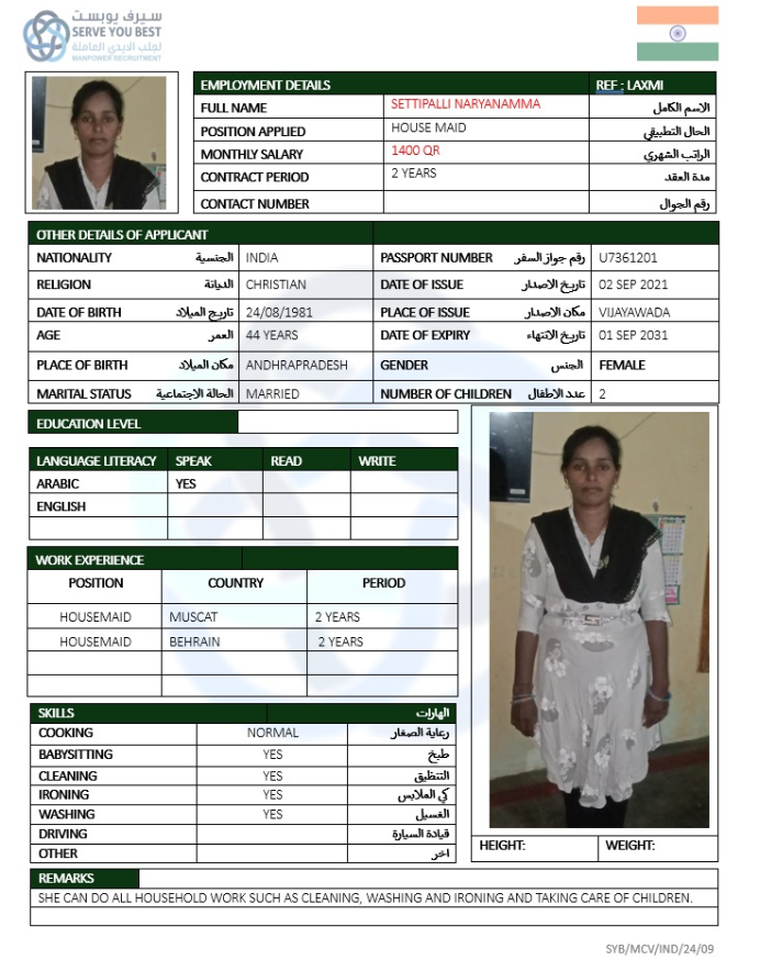 المهنة عاملة منزلية