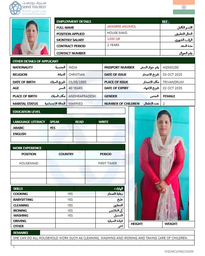 الاسم - عربي jayasree anumol