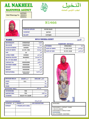 الاسم - عربي MULU BERHA GIDEY