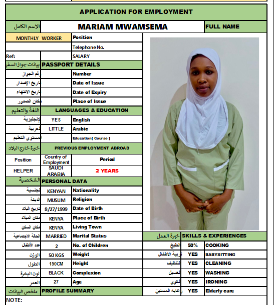 المهنة عاملة منزلية