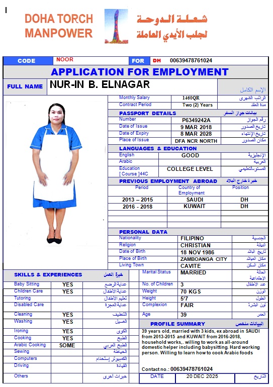الاسم - عربي NUR-IN B ELNAGAR
