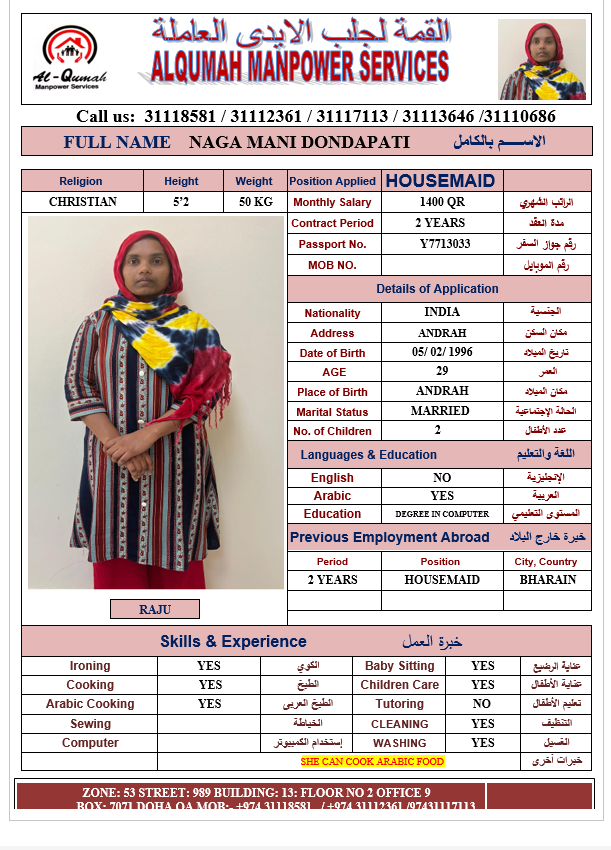 الاسم - عربي NAGA MANI DONDAPATI