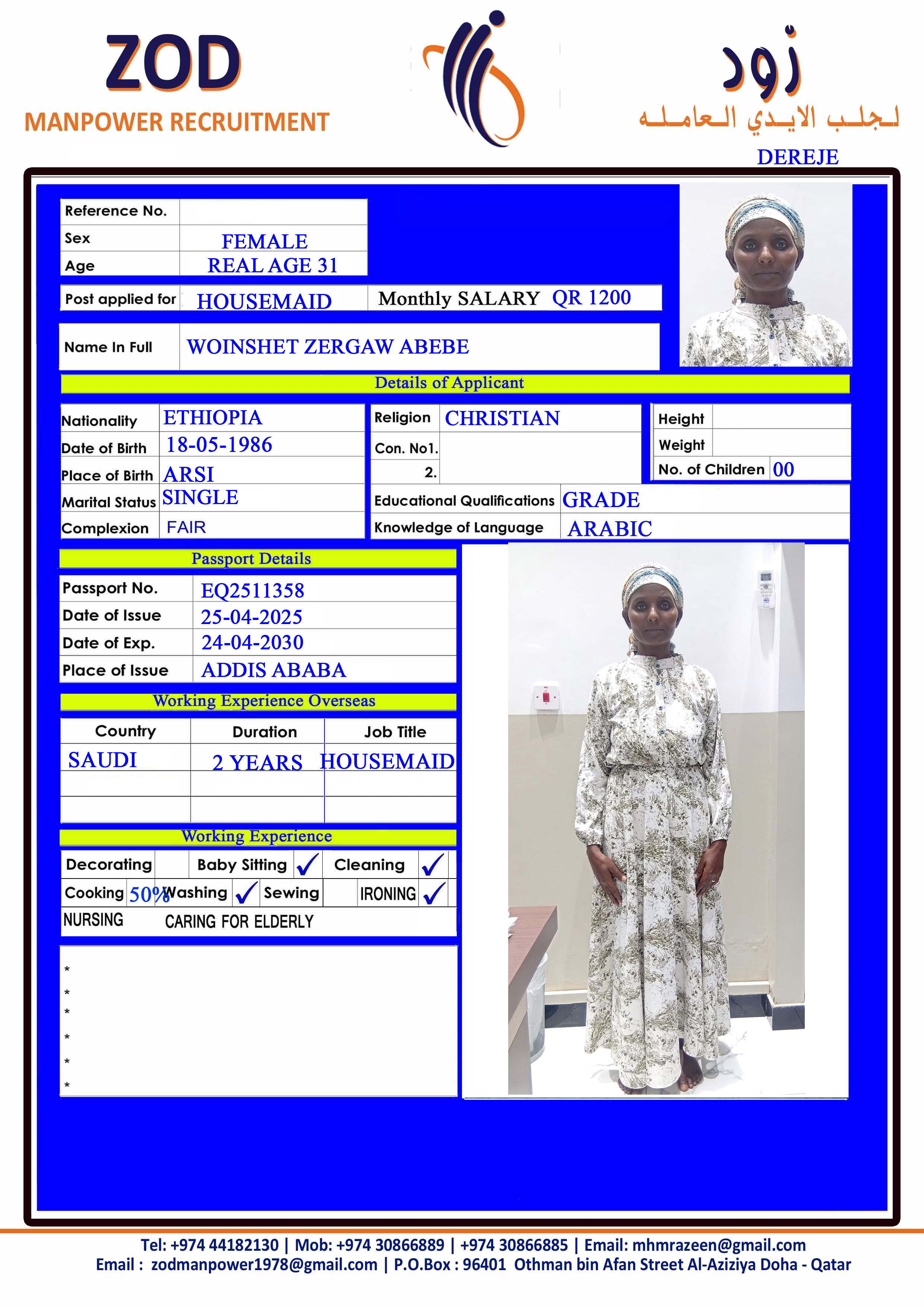 الاسم - عربي WOINSHET ZERGAW ABEBE 74