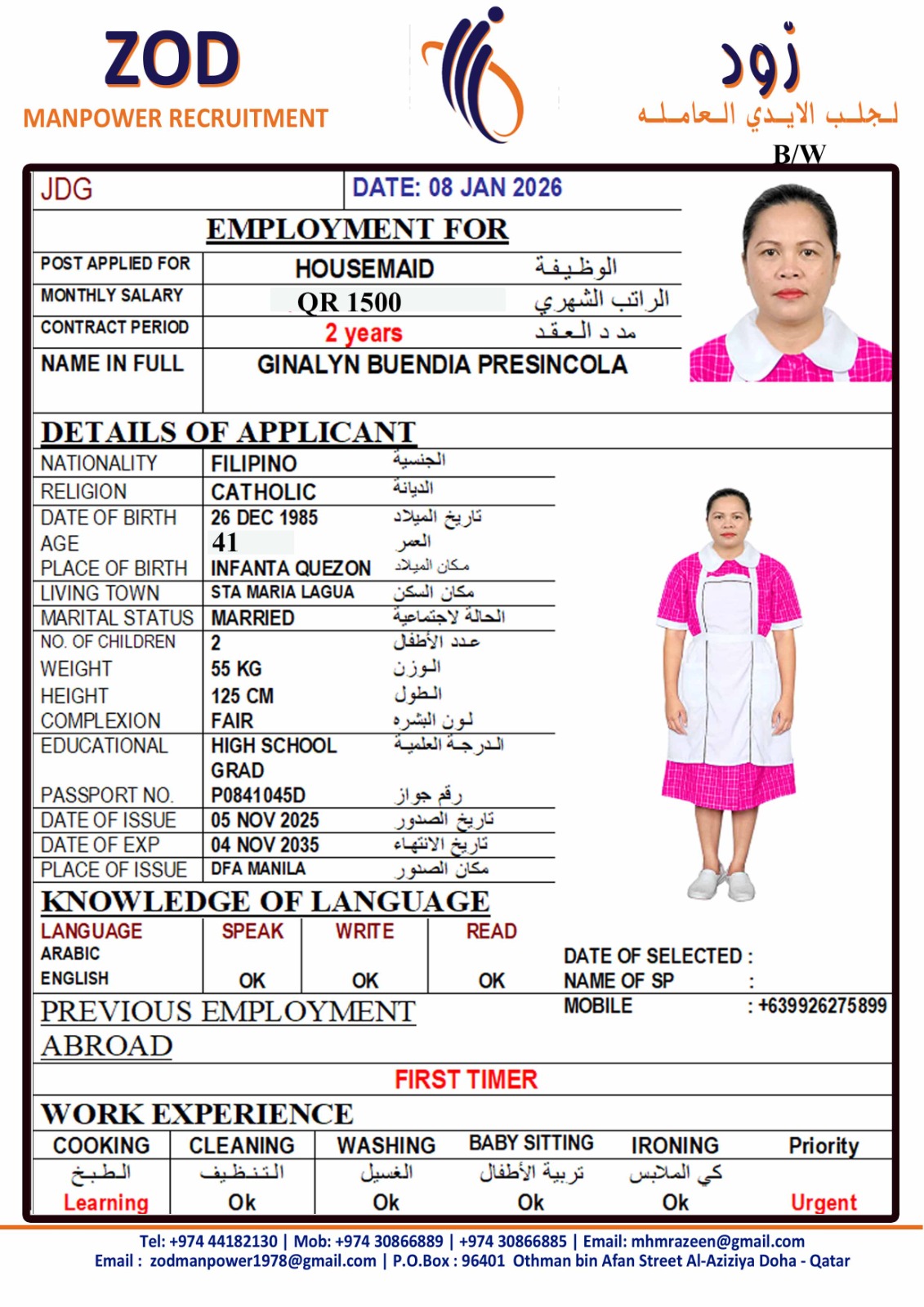 الاسم - عربي GINALYN BUENDIA PRESINCOA