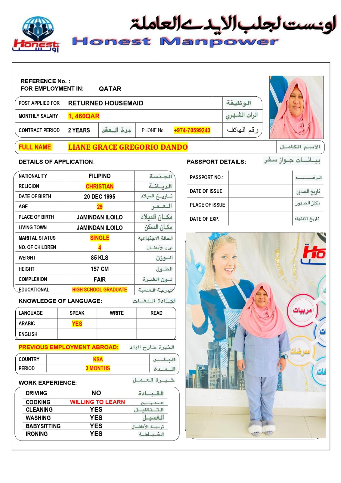 الاسم - عربي LIANE GRACE GREGORIO DANDO