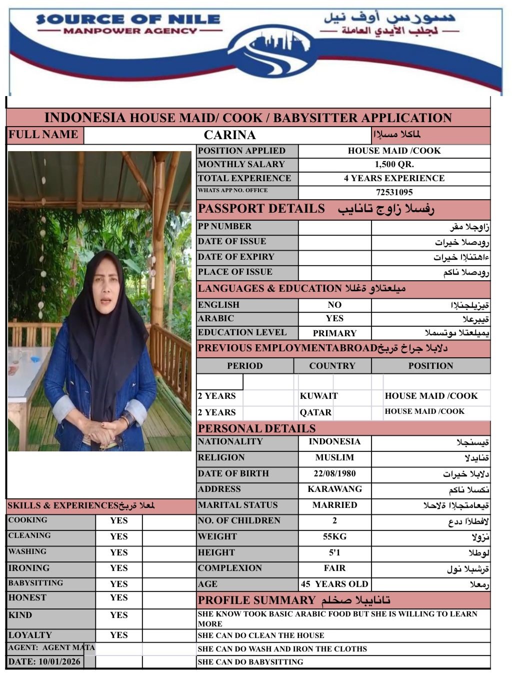 الاسم - عربي CARINA INDONESIA