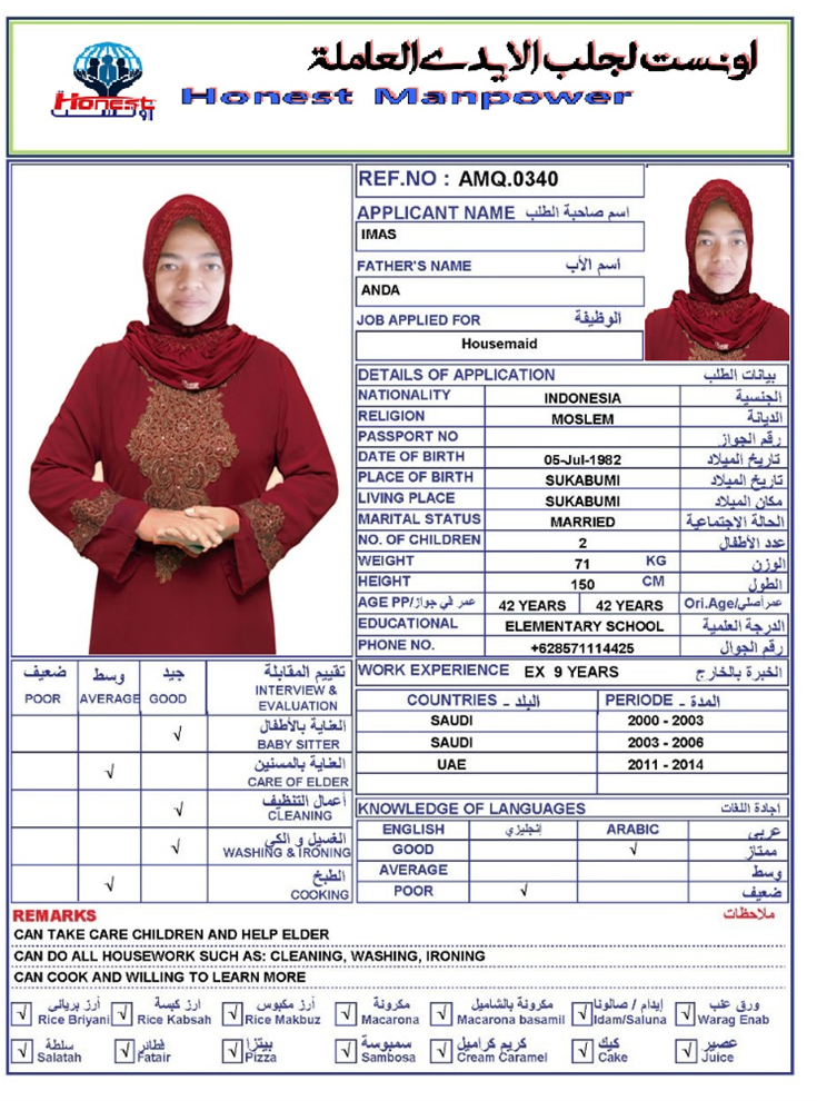 الاسم - عربي IMAS BT ANDA AHDI