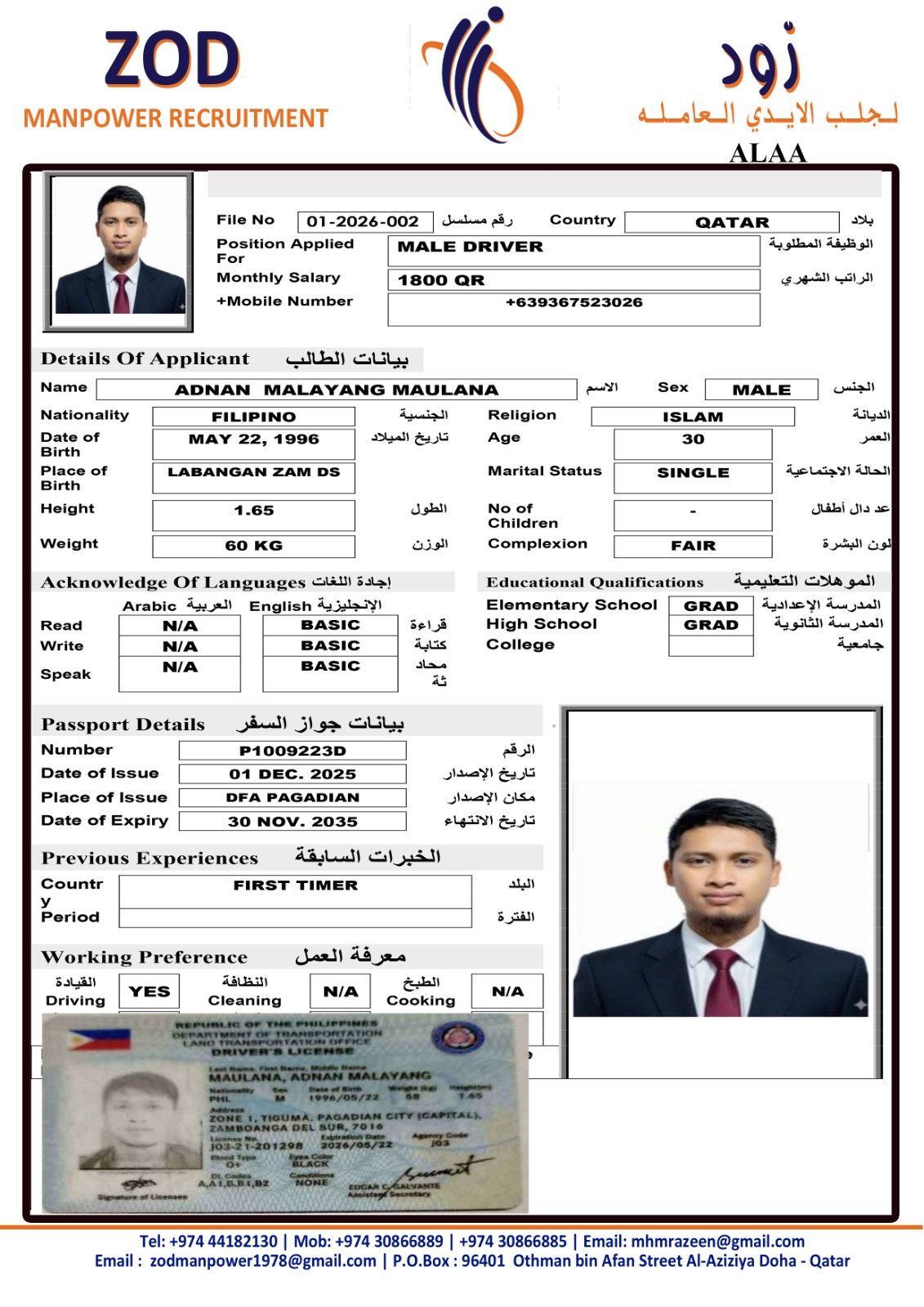 الاسم - عربي ADNAN MALAYANG MAULANA