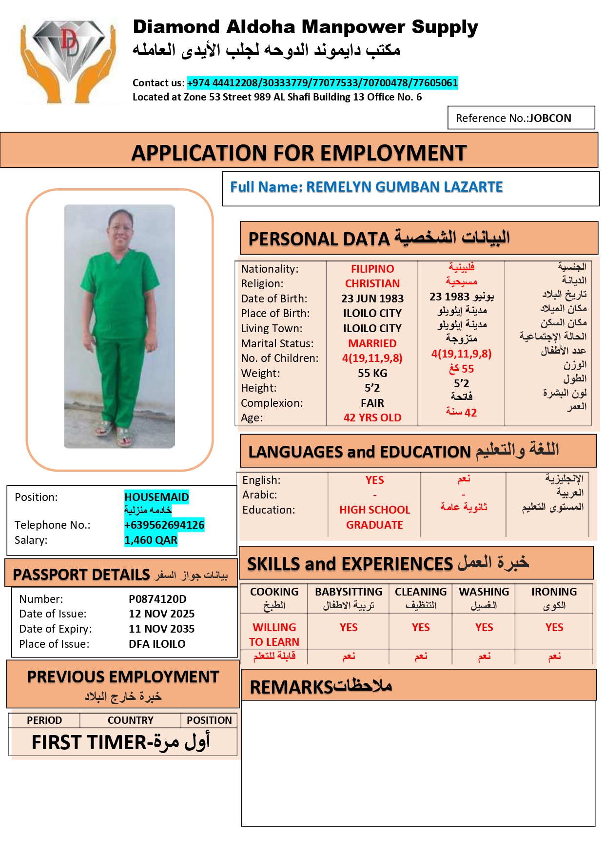 الاسم - عربي REMELYN GUMBAN LAZARTE