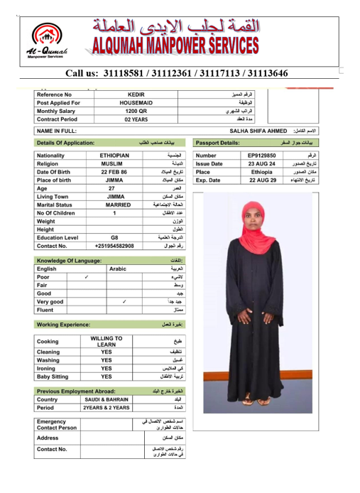 الاسم - عربي SALHA SHIFA AHMED