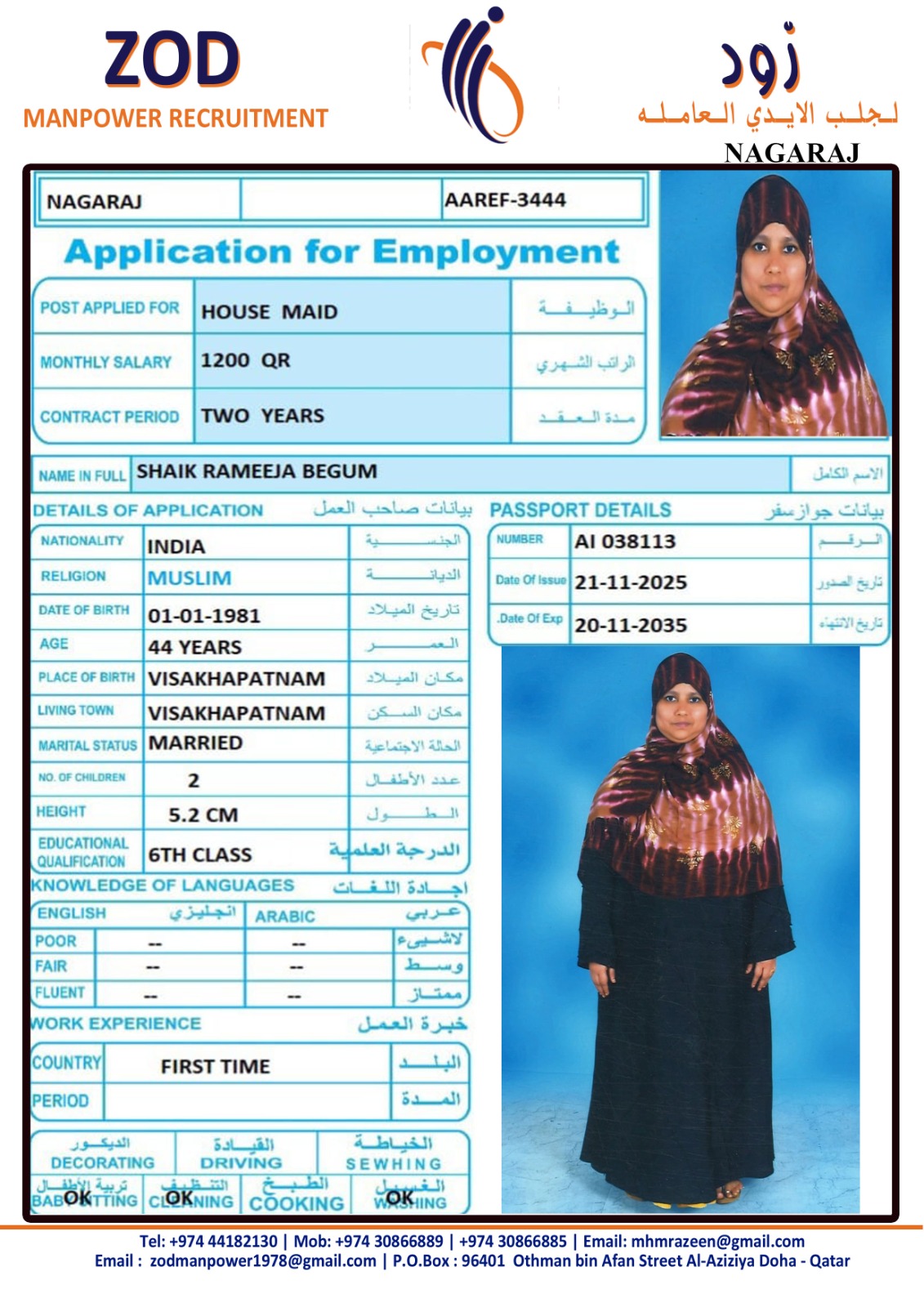 الاسم - عربي SHAIK RAMEEJA BEGUM