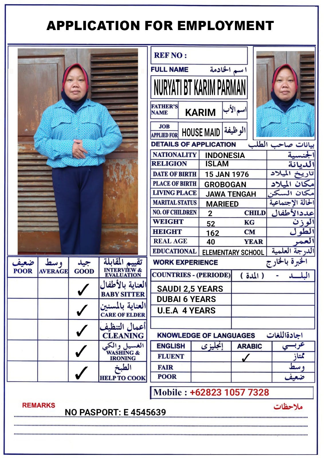 الاسم - عربي NURYATI BT KARIM PARMAN