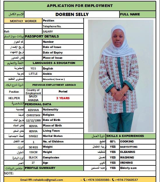 المهنة عاملة منزلية