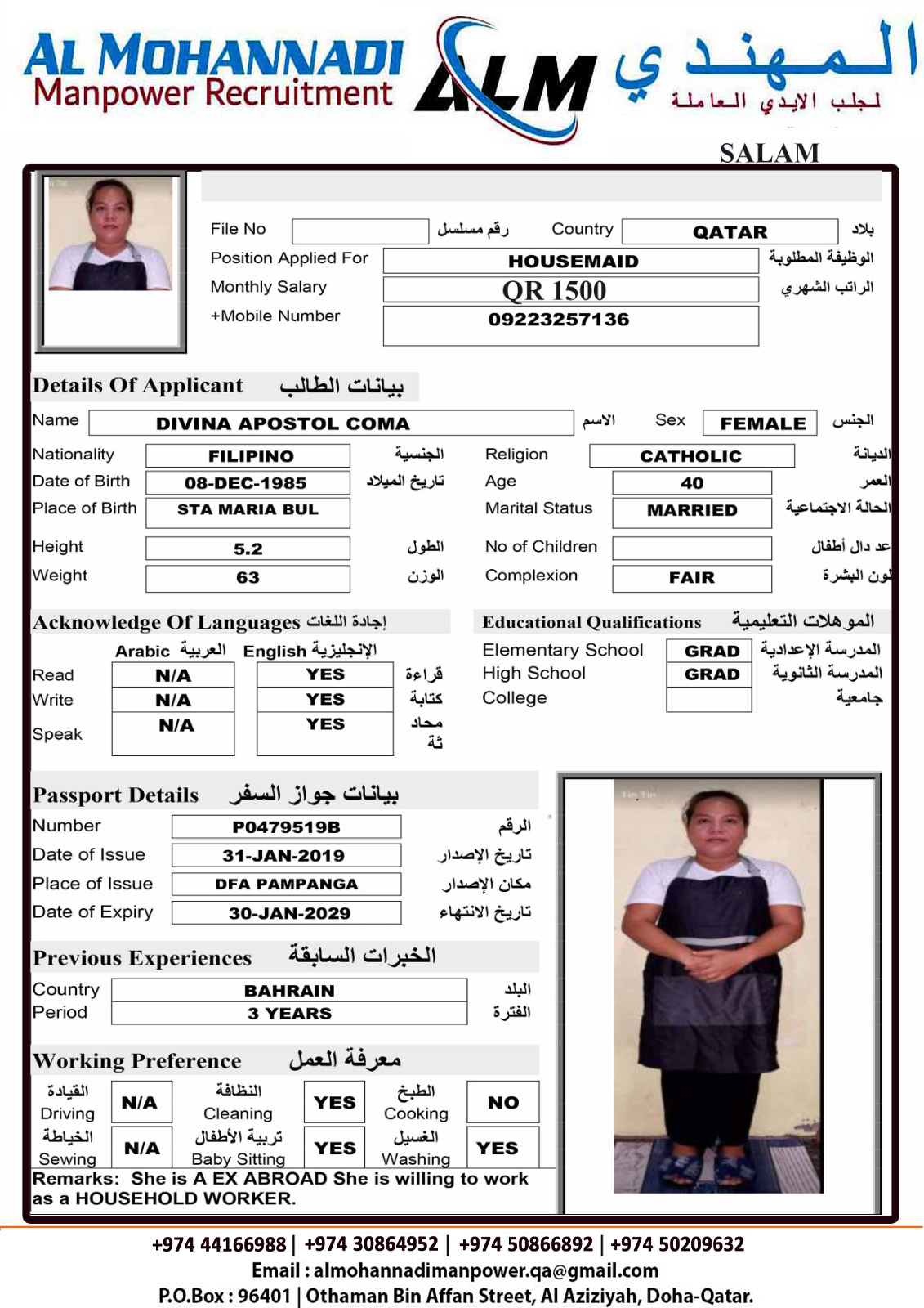 البريد الإلكتروني almohannadimanpower.qa@gmail.com
