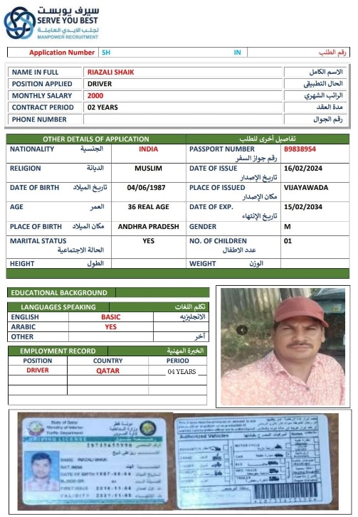الاسم - عربي RIAZALI SHAIK