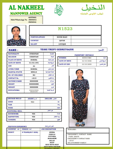 الاسم - عربي YESHI YREFU GEBRETSAADIK