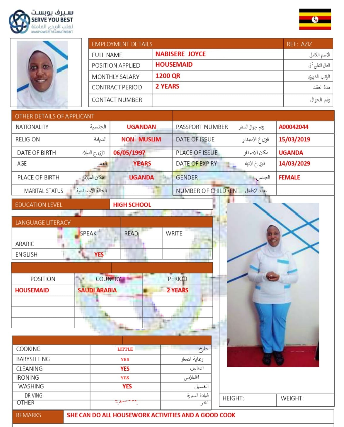 الاسم - عربي NABISERE JOYCE