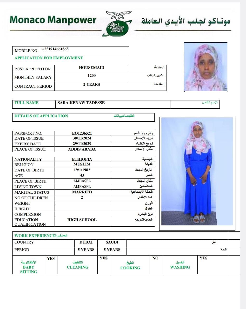 الجنسية أثيوبيا