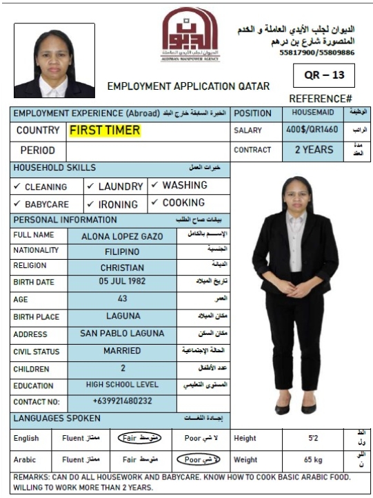 المهنة عاملة منزلية