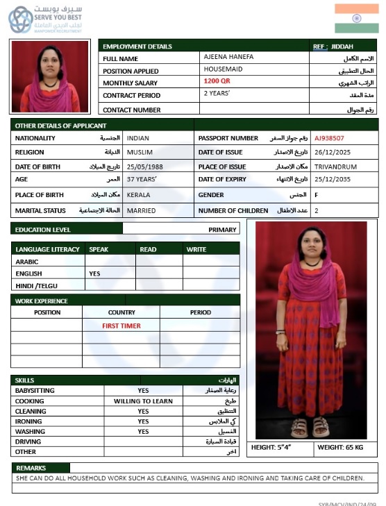 المهنة عاملة منزلية