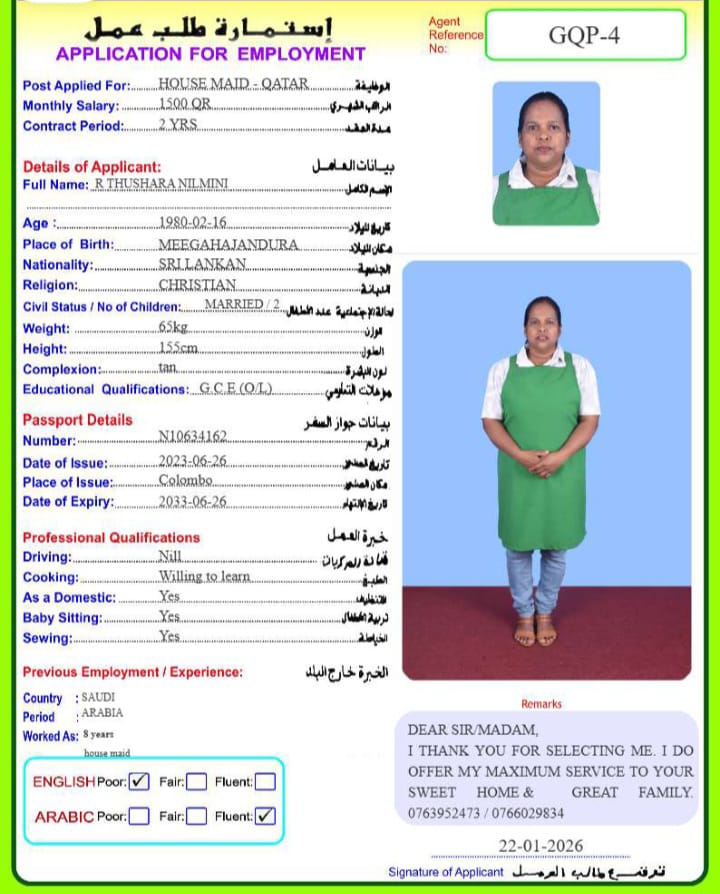 الاسم - عربي THUSHARA NILMINI RANASINGHAGE