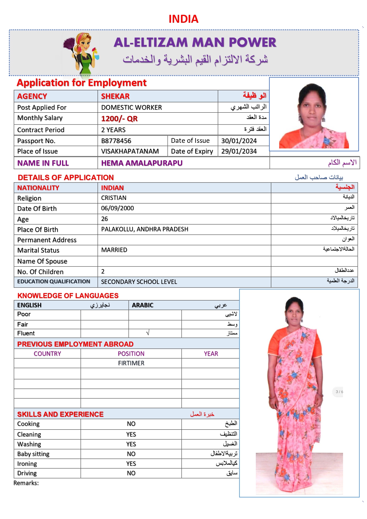المهنة عاملة منزلية