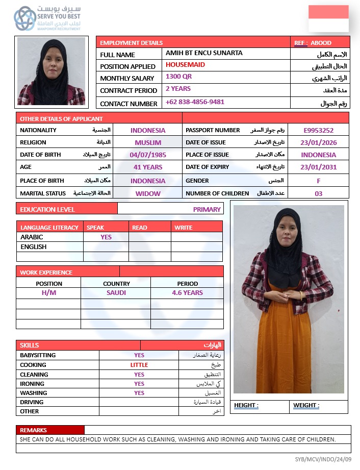 الاسم - عربي AMIH BT ENCU