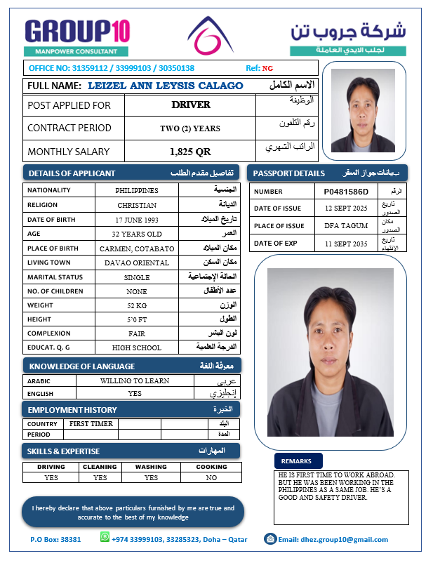 الاسم - عربي LEIZEL ANN L. CALAGO