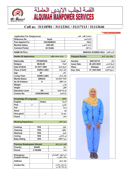 الاسم - عربي MAKIDA HUSSEN HAJI