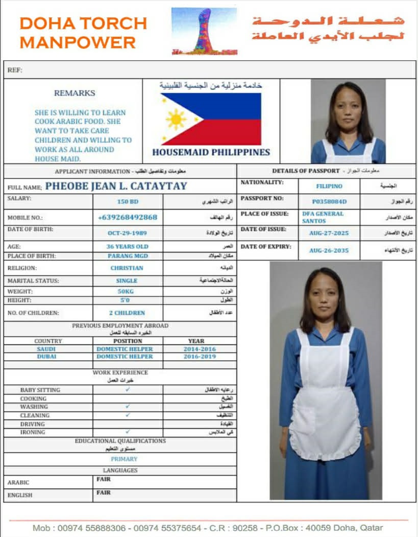الاسم - عربي PHEOBE JEAN CATAYTAY