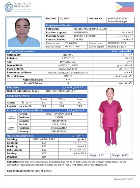 الاسم - عربي RITCHIE MARJE DIAZ LADAN