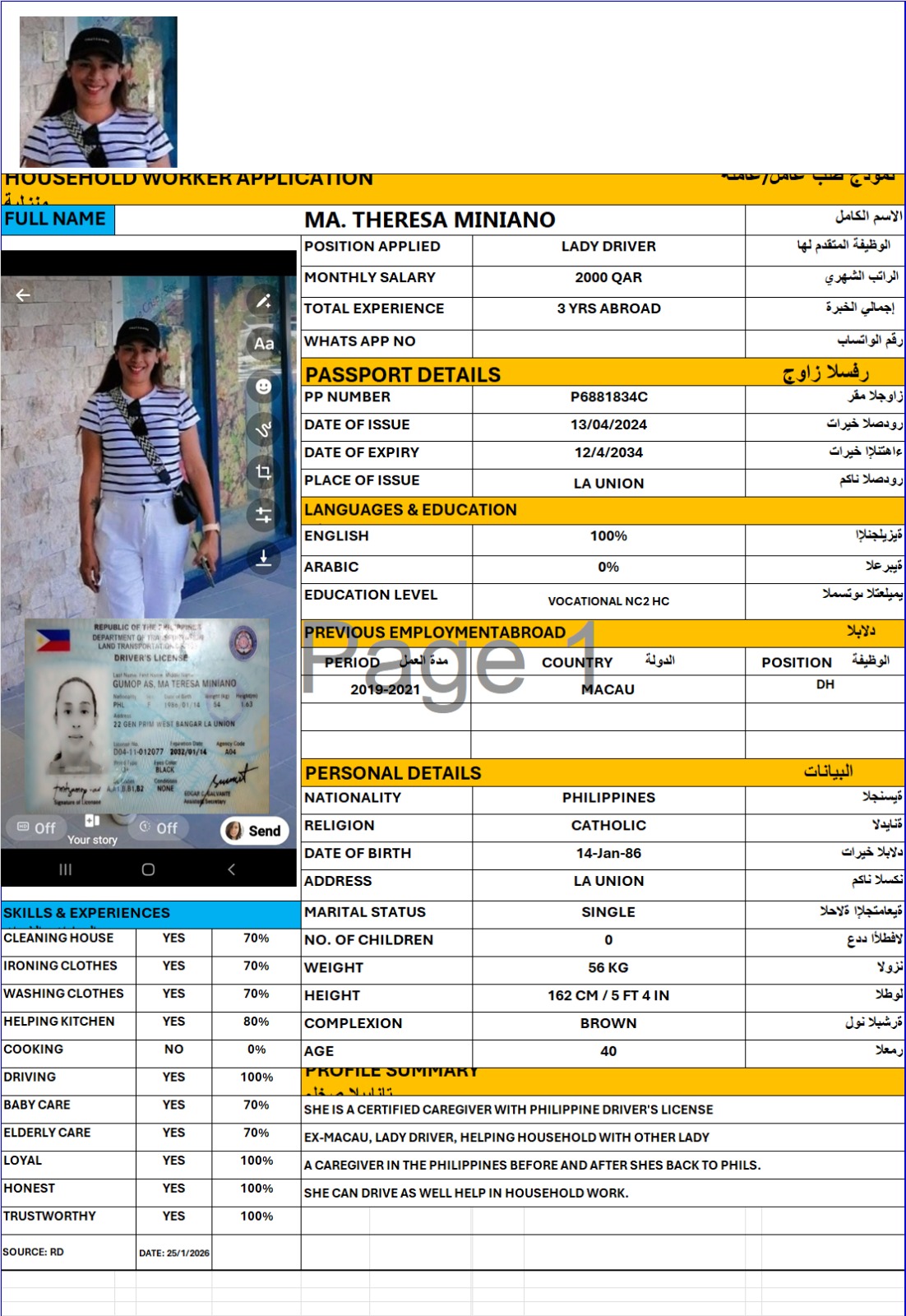 الاسم - عربي MA THERESA GUMOP