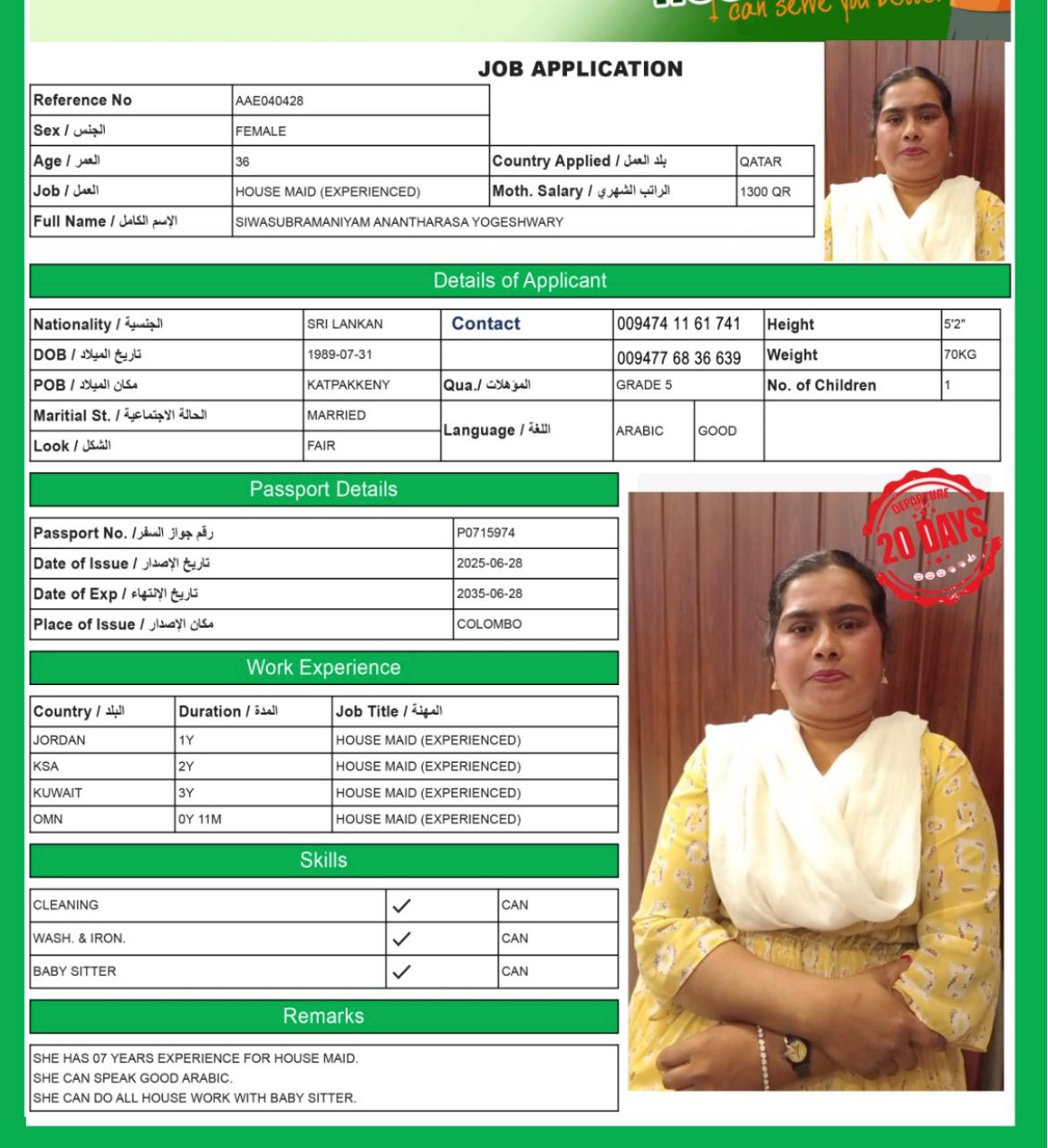الاسم - عربي SIWASUBRAMANIYAM YOGESHWARY