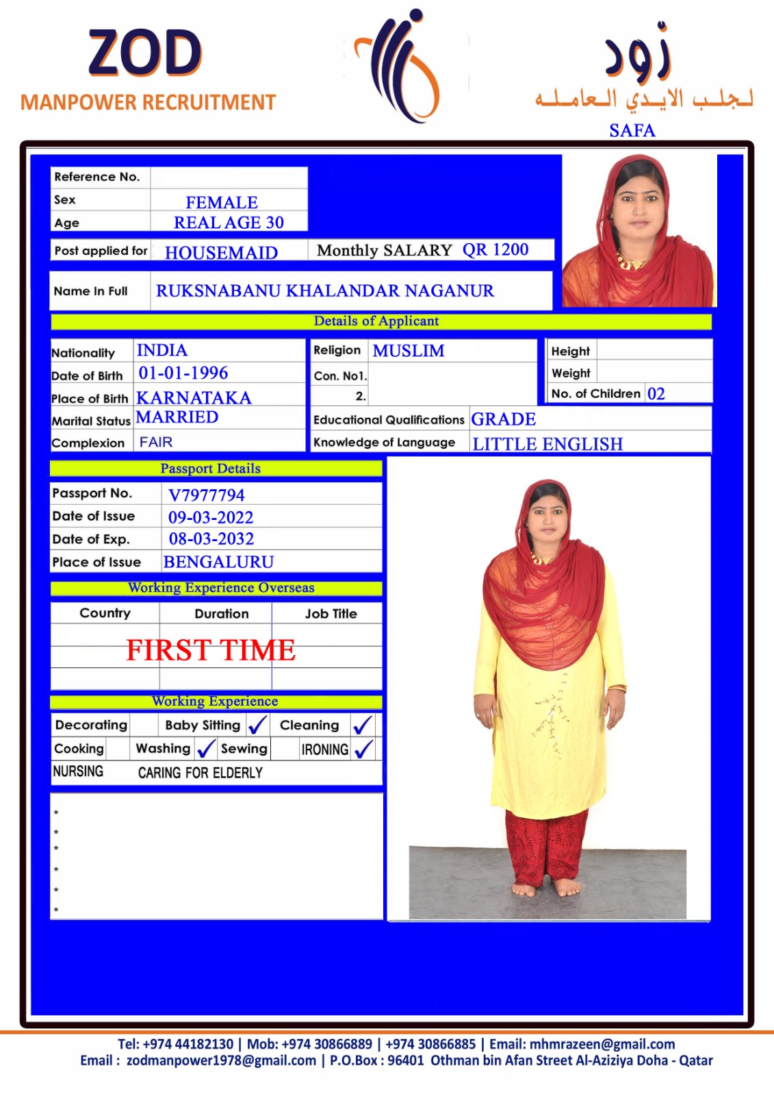 الاسم - عربي RUKSNABANU KHALANDAR NAGANUR