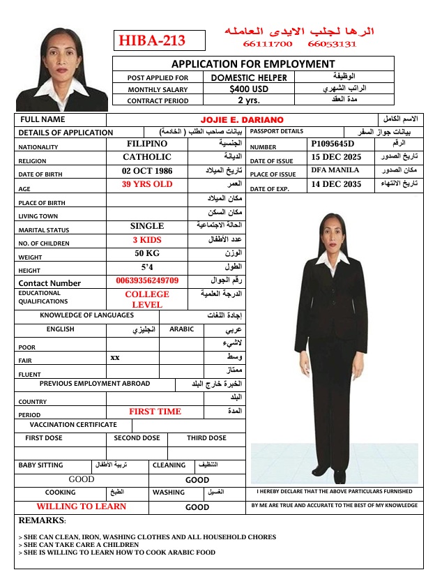 المهنة عاملة منزلية